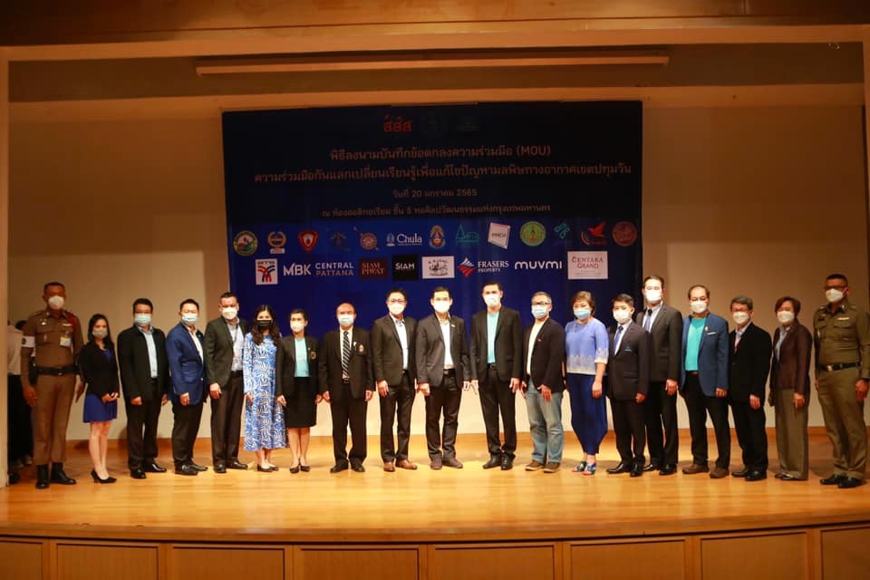 เมื่อวันพฤหัสบดีที่ 20 มกราคม พ.ศ.2565 ณ หอศิลปวัฒนธรรมแห่งกรุงเทพมหานคร เขตปทุมวัน กรุงเทพฯ สำนักงานกองทุนสนับสนุนการสร้างเสริมสุขภาพ (สสส.) ร่วมกับ สำนักงานเขตปทุมวัน กรุงเทพมหานคร กรมควบคุมมลพิษ กระทรวงทรัพยากรและสิ่งแวดล้อม จัดพิธีเปิดโครงการอากาศสะอาดเขตปทุมวันพร้อมลงนามบันทึกข้อตกลงความร่วมมือแลกเปลี่นเรียนรู้เพื่อแก้ไขปัญหามลพิษทางอากาศเขตปทุมวันตามโครงการอากาศสะอาดเขตปทุมวัน โดยร่วมกับ 18 หน่วยงาน อาทิ กรมขนส่งทางบก กองบังคับการตำรวจจราจร สถานีตำรวจนครบาลปทุมวัน สำนักงานทรัพย์สินจุฬาลงกรณ์มหาวิทยาลัย สถาบันเทคโนโลยีปทุมวัน วัดปทุมวนารามราชวรวิหาร เพื่อสร้างความร่วมมือพัฒนาแนวทางป้องกันและแก้ไขปัญหาเพื่อฟื้นฟู และแก้ไขปัญหาเพื่อฟื้นฟูอากาศสะอาดกลับคืนสู่พื้นที่เขตกรุงเทพมหานครอย่างเร่งด่วน