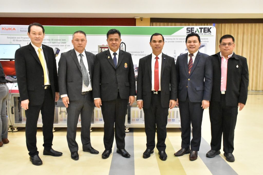 ราชภัฏนครสวรรค์ , รองศาสตราจารย์ ดร.พิชัย จันทร์มณี อธิการบดีมหาวิทยาลัยเทคโนโลยีราชมงคลกรุงเทพ , ว่าที่ร้อยตรี ธนุ วงษ์จินดา เลขาธิการคณะกรรมการการอาชีวศึกษา และผู้บริหารสถานประกอบการเข้าร่วมงาน โดยมีรองศาสตราจาย์ ดร.เสถียร ธัญญศรีรัตน์ อธิการบดีสถาบันเทคโนโลยีปทุมวัน พร้อมผู้บริหาร คณาจารย์และบุคลากรให้การต้อนรับ