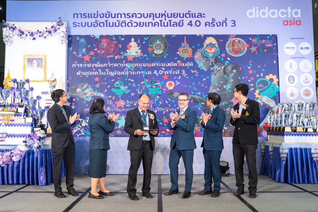 ในการเปิดงานนิทรรศการสื่อการศึกษาและการประชุมนานาชาติ didacta asia 2024 (ดิแดคต้า เอเซีย) และงาน didacta asia congress (ดิแดคต้า เอเซีย คองเกรส) เมื่อวันที่ 16 ตุลาคม 2567 ณ ศูนย์นิทรรศการไบเทค มิสเตอร์ฮันส์ สโตเตอร์ (Mr.Hans Stoter) กรรมการผู้จัดการประจำภูมิภาคเอเซีย โครงการ ดิแดคต้า เอเซีย มอบโล่ ประกาศเกียรติคุณแก่ สถาบันเทคโนโลยีปทุมวัน เจ้าภาพหลักการแข่งขันควบคุมหุ่นยนต์และระบบอัตโนมัติด้วยเทคโนโลยีอุตสาหกรรม 4.0 ครั้งที่ 3 ในนิทรรศการสื่อการศึกษาและการประชุมนานาชาติ didacta asia 2024 (ดิแดคต้า เอเซีย) และงาน didacta asia congress (ดิแดคต้า เอเซีย คองเกรส) จัดโดย โคโลญเมสเซ่ และแมสเซ่สตุ๊ดการ์ท มีวัตถุประสงค์ เพื่อแลกเปลี่ยนนโยบาย องค์ความรู้ และส่งเสริมการศึกษาให้กับนักศึกษาและบุคลากรทางการศึกษา