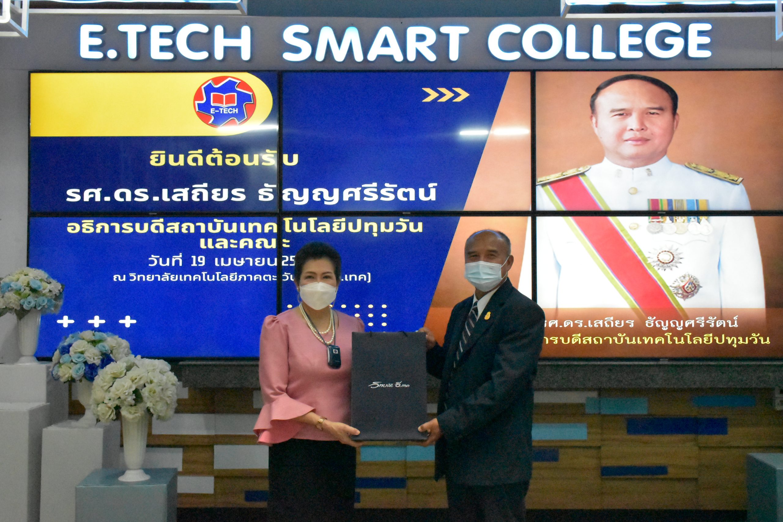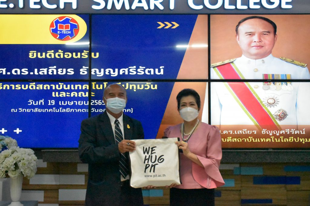 เมื่อวันอังคารที่ 19 เมษายน 2565 สถาบันเทคโนโลยีปทุมวัน โดย รองศาสตราจารย์ ดร.เสถียร ธัญญศรีรัตน์ อธิการบดี พร้อมด้วย อาจารย์บุญชู สมบุญเพ็ญ คณบดีคณะวิทยาศาสตร์และเทคโนโลยี ผู้ช่วยศาสตราจารย์ ดร.ประสิทธิ์ นางทิน คณบดีคณะวิศวกรรมศาสตร์ พร้อมด้วยคณาจารย์ และเจ้าหน้าที่สถาบันฯ เข้าพบผู้บริหารวิทยาลัยเทคโนโลยีตะวันออก (อี.เทค.) 31 หมู่ 2 ตำบลหนองตำลึง อำเภอพานทอง จังหวัดชลบุรี โดย ดร.ประเสริฐ กลิ่นชู ผู้อำนวยการวิทยาลัย มอบให้อาจารย์อัมพร อุนทสูรย์ รองผู้อำนวยการ และรองผู้อำนวยการฝ่ายต่างๆ ให้การต้อนรับอธิการบดีและคณะ เข้าศึกษาดูงานภายในวิทยาลัยฯ ทั้งนี้อธิการบดี คณาจารย์และเจ้าหน้าที่ของสถาบันฯ ได้หารือความเป็นไปได้ในการสร้างเครือข่ายด้านการเรียนการสอน และความร่วมมือด้านการเรียนการสอน อันเป็นเปิดโอกาสทางการศึกษาของนักศึกษาทั้ง 2 สถาบันฯ ต่อไป